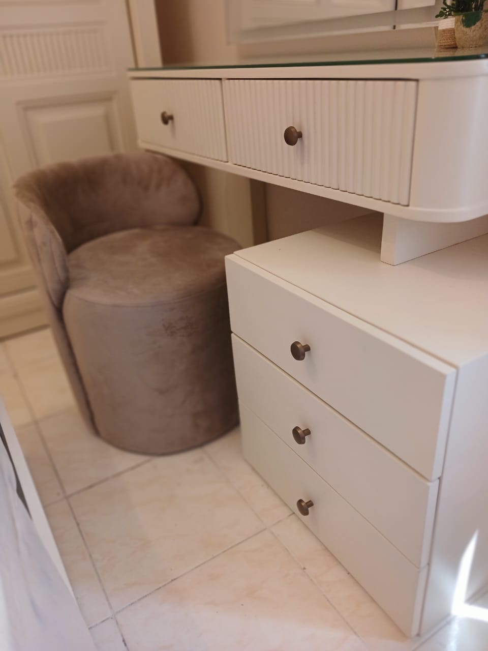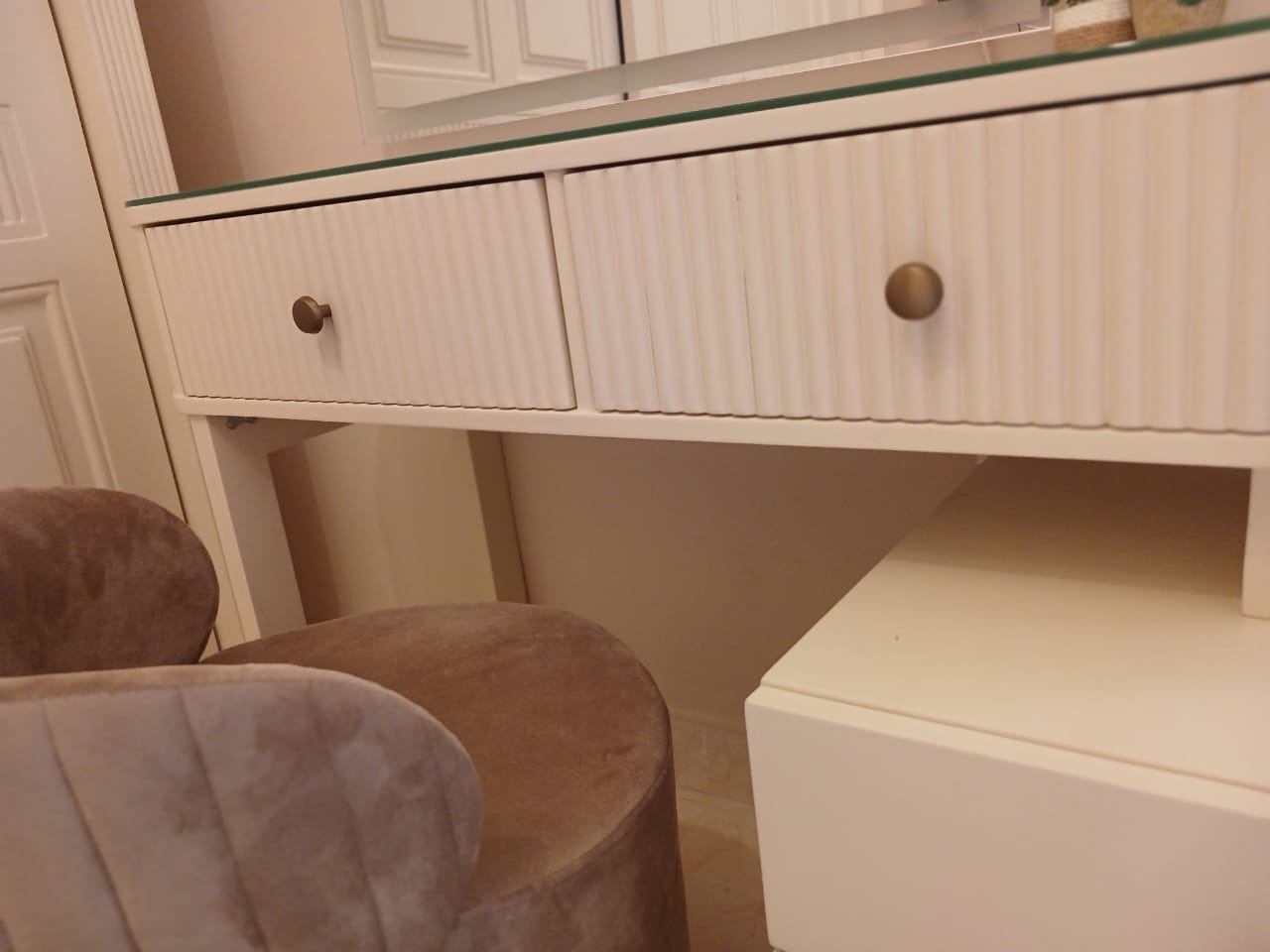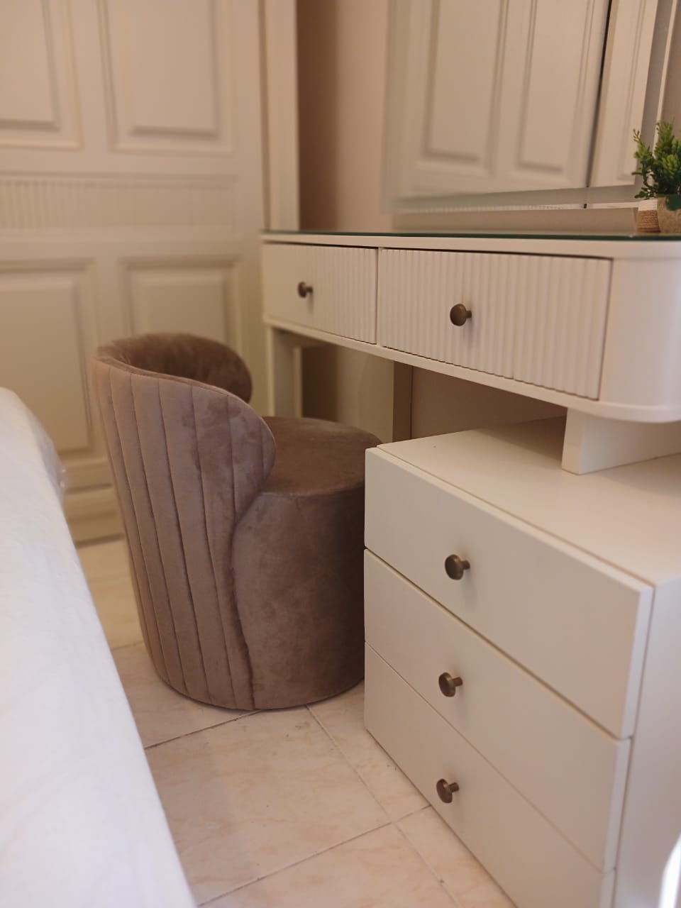 - Work or Vanity Desk: A compact area for tasks or personal grooming.